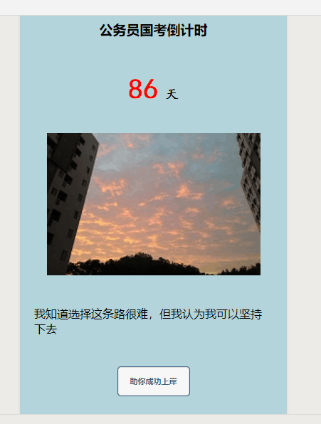 这次优化就花了一个星期左右,大多数时间会比较浪费在基础功上,有很多知识应该掌握的缺乏了,导致百度的多,还好也锻炼了自己解决bug的能力。相信会越做越好,也相信女友能考上,考公的伙伴同样也可以上岸,加油。