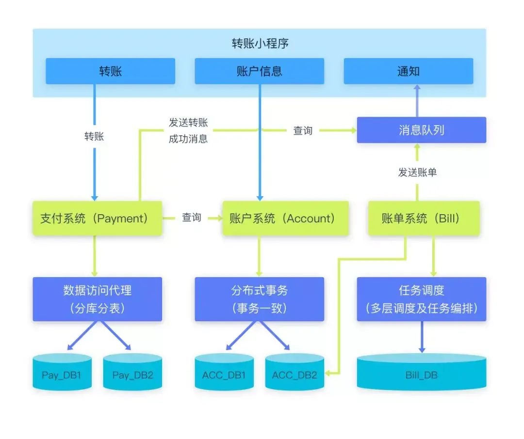 我们来举个例子,假设转账业务的前端是小程序,其完整的流程图如下: