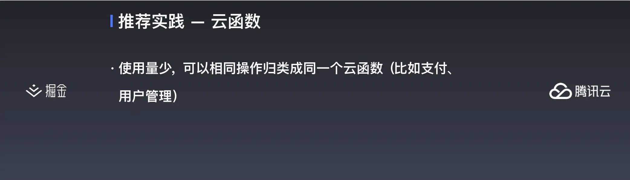 讲一项技术,除了讲功能、讲底层,其实更重要地说讲怎么去用这门技术去实践。接下来,我会介绍一些我们推荐的实践方式,但我只会是点到为止,我们其实更希望社区能基于云开发,做出更多更好的实践。