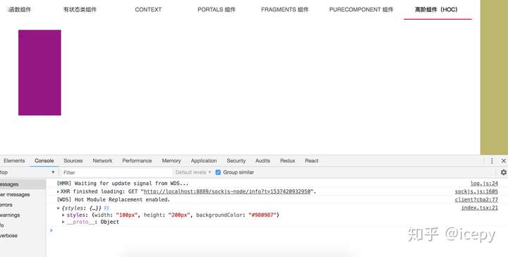 当然我们的这个案例中是一个非常简单的高阶组件,正常情况下,你应该要处理好容器组件中的生命周期,这些会有一些额外的事情。这个案例很好的利用了高阶组件这样的设计方法,完成了它想要的结果。