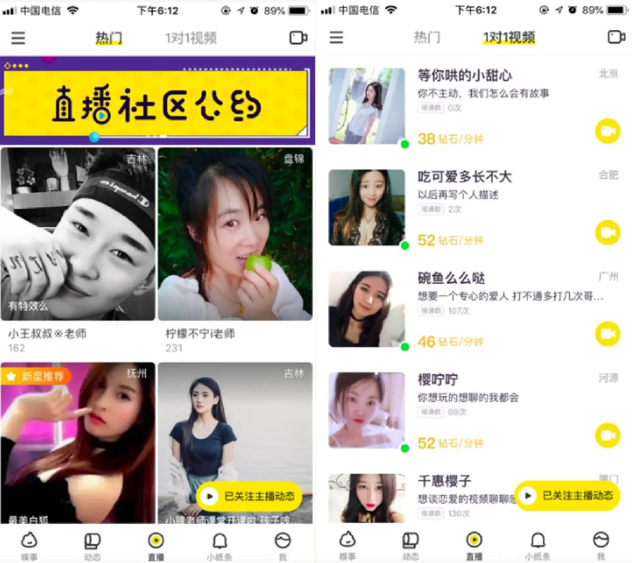 同时,在「糗事百科」还可以观看直播,关注主播隐私生活,畅聊八卦。值得一提的是,「糗事百科」支持「1 对 1 视频」,约会直播间,主播陪你聊天、唱歌、玩游戏。