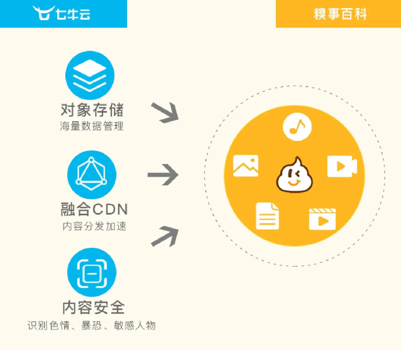 面对「糗事百科」庞大的用户体量和高频次使用,七牛云对象存储方案保证了其数据存储的高可靠性,支持异地双活,提高了「糗百」的业务灵活性。七牛云融合 CDN 实现了对数据网络加速的进一步优化,覆盖全球数千个分发节点,保障「糗百」内容服务的即时性与流畅性,为糗友们提供稳定快速的网络访问质量。