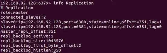 节点启动后,连接主节点查看主从状态是否正常,如下图所示:
