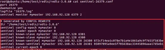 此时如果查看哨兵节点的配置文件,会发现一些变化,以26379为例:
