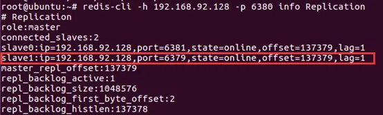 但是同时可以发现,哨兵节点认为新的主节点仍然有2个从节点,这是因为哨兵在将6380切换成主节点的同时,将6379节点置为其从节点;虽然6379从节点已经挂掉,但是由于哨兵并不会对从节点进行客观下线(其含义将在原理部分介绍),因此认为该从节点一直存在。当6379节点重新启动后,会自动变成6380节点的从节点。下面验证一下。