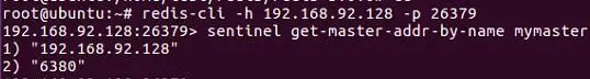 - sentinel get-master-addr-by-name mymaster:获取监控的主节点mymaster的地址信息,前文已有介绍