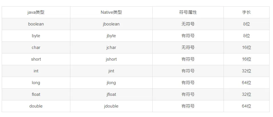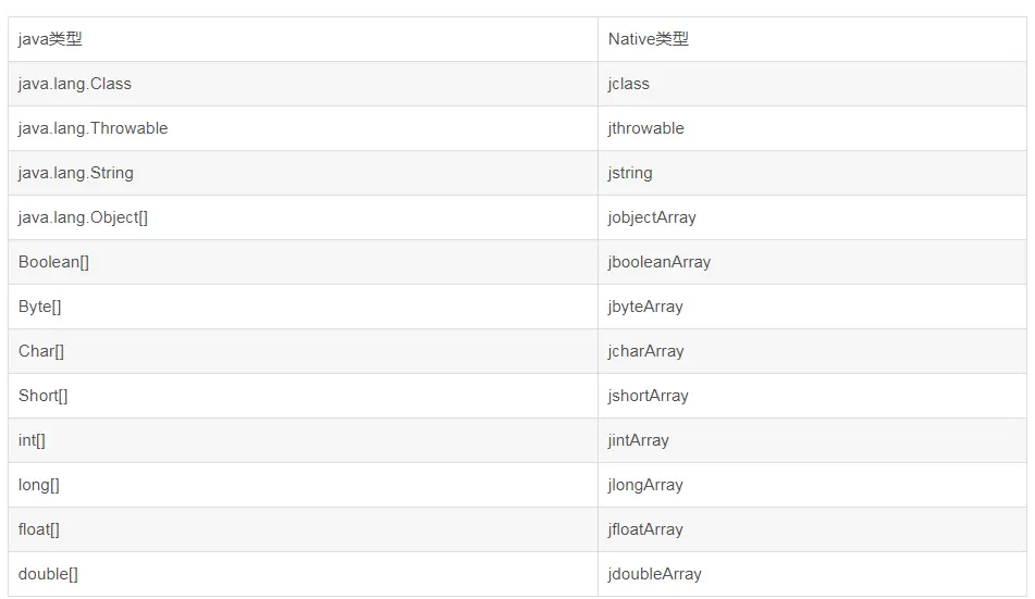 Java和Jni的类型对照表