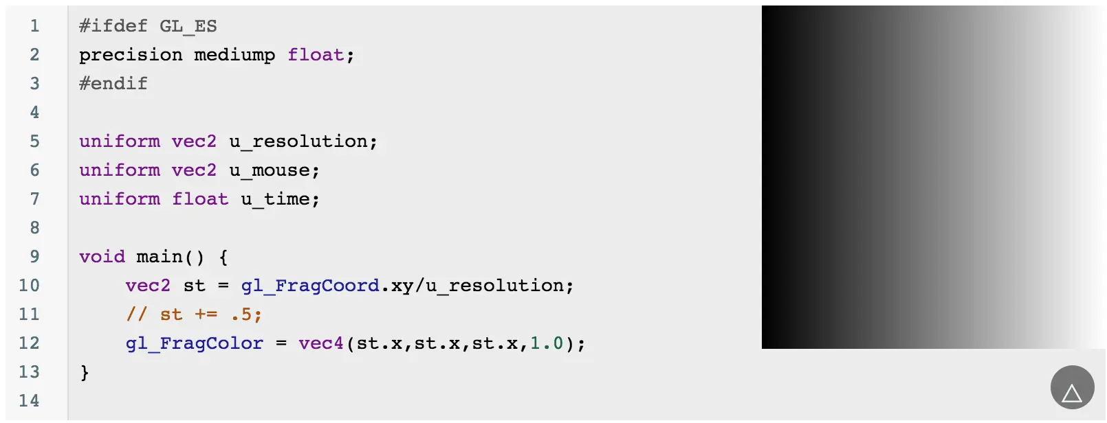 Shader 中的坐标计算 Hankz 2018-09-20 1,375 阅读1分钟 下面介绍 Shader 中 gl_FragCoord 的加减乘除计算。简单概括一下,加减计算是位移,而乘除则是缩放: 一、加减 加法是左移: 减法是右移: 二、乘除 乘除的会让画面放大或缩小,至于放大还是缩小,取决于乘除的那个值: