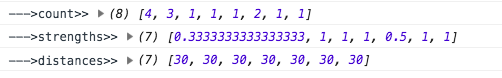 计算出来两个值strengths和distances 有一个过渡值count distances的值始终固定。