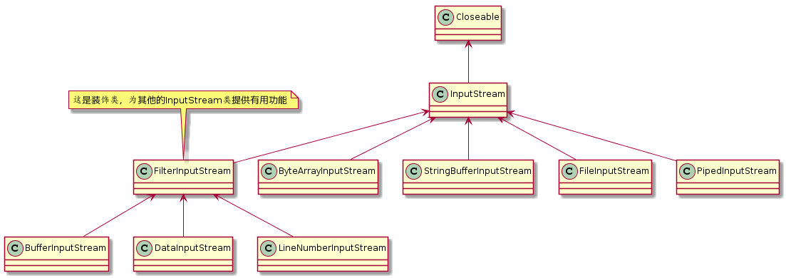 抽象类,作为装饰器的接口,为其他的InputStream提供有用的功能 |