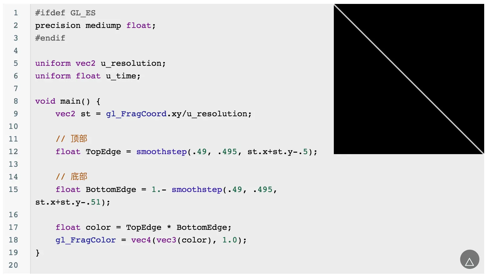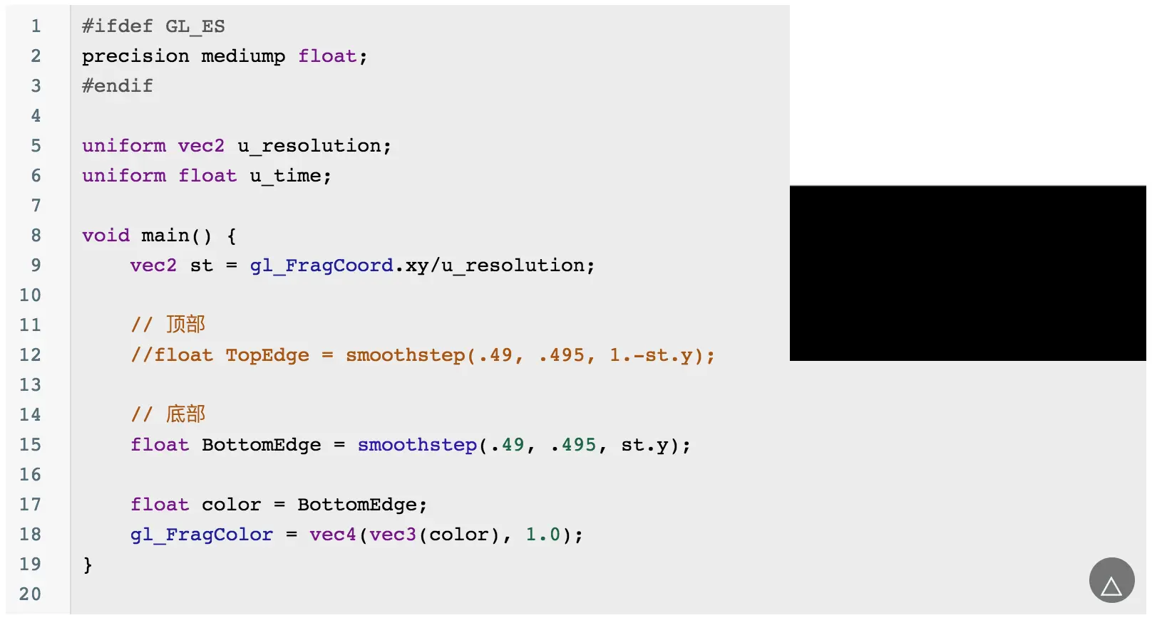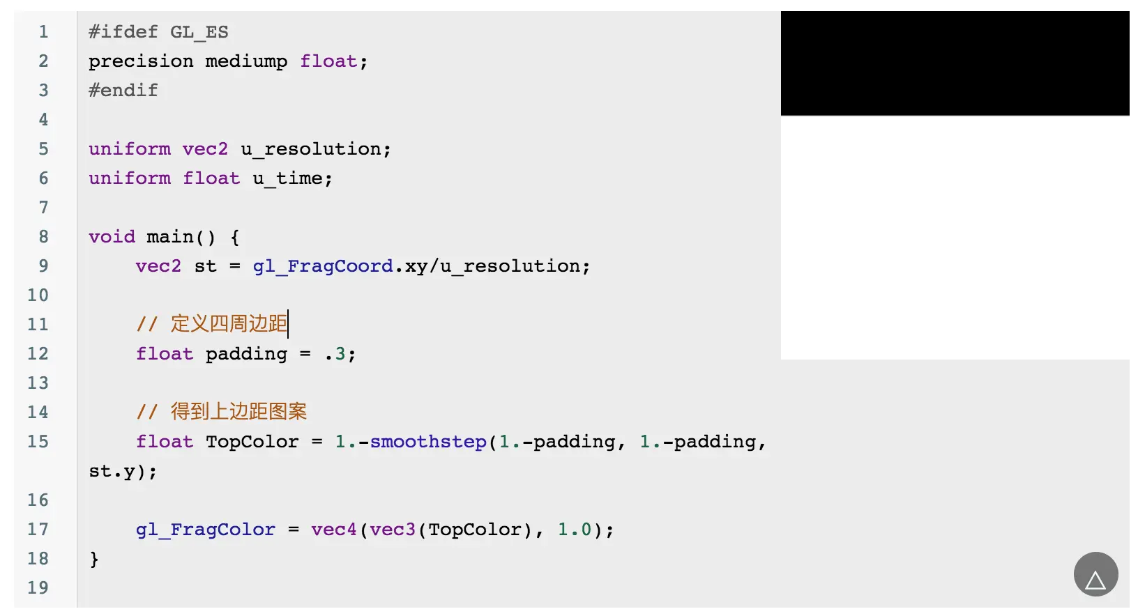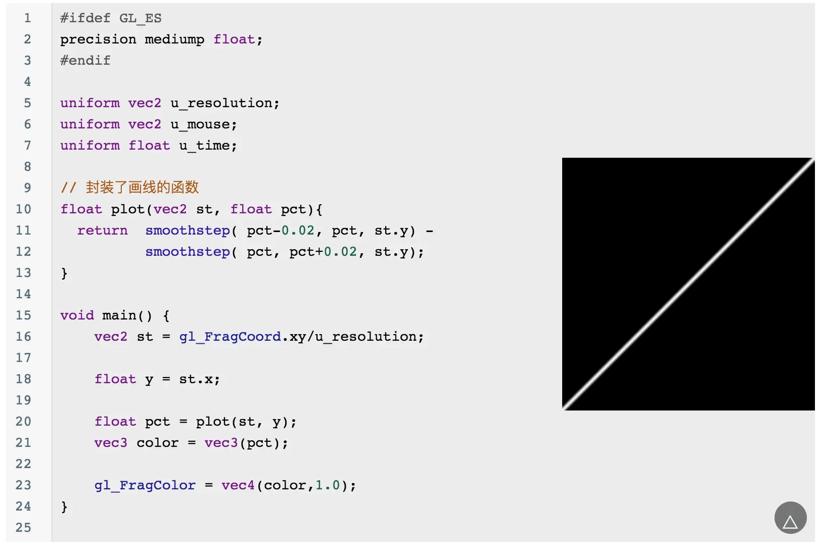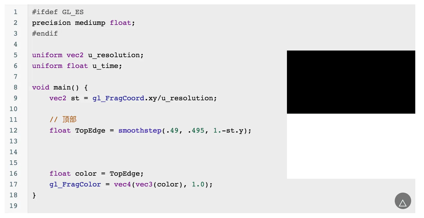 当然你会发现这个圆的边缘有锯齿,可以通过 smoothstep 来优化边缘问题: