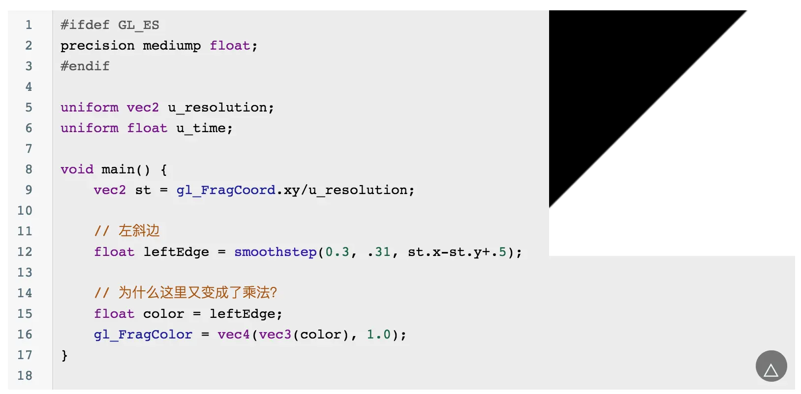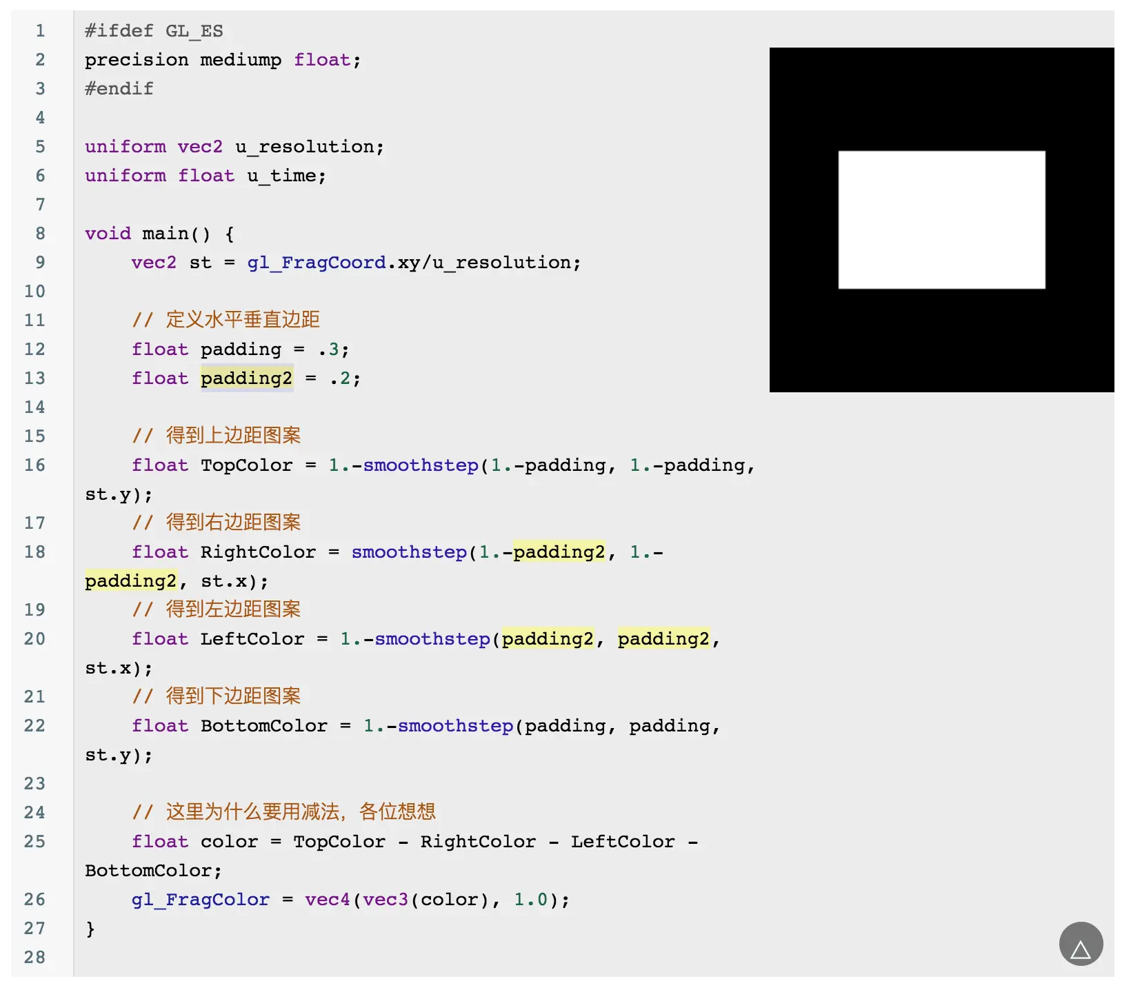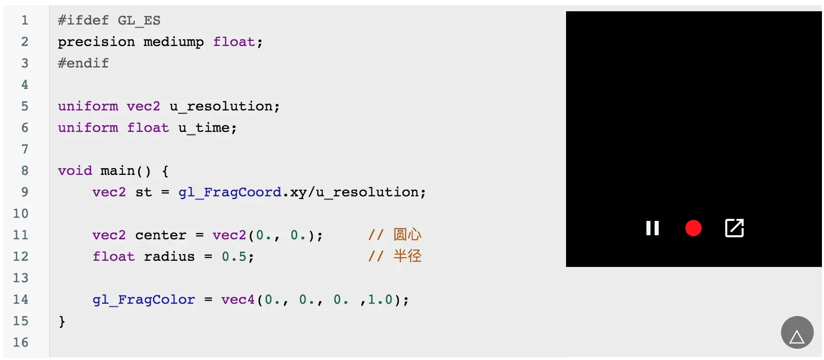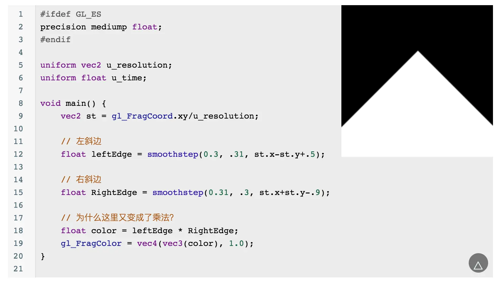 当然你会发现这个圆的边缘有锯齿,可以通过 smoothstep 来优化边缘问题: