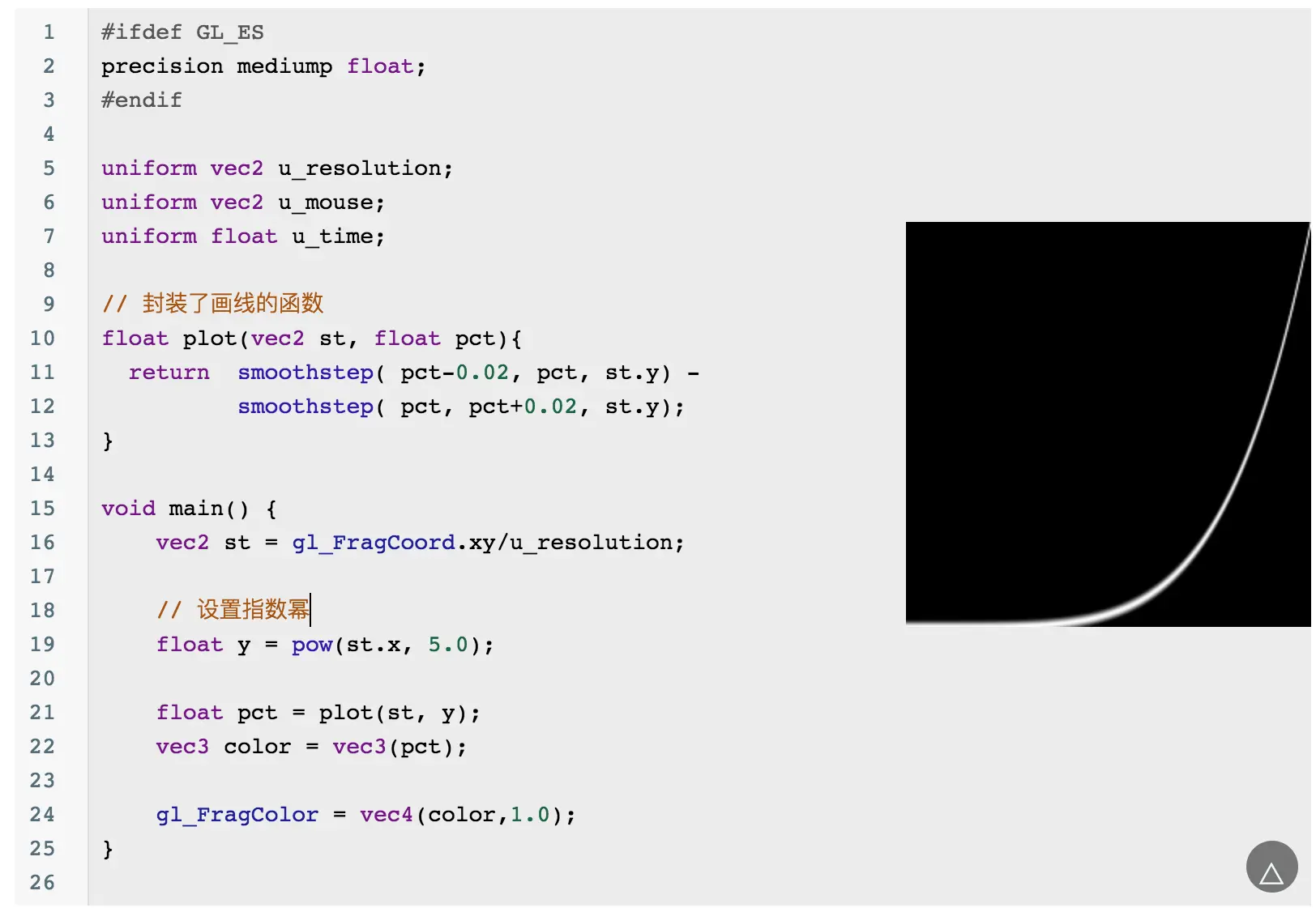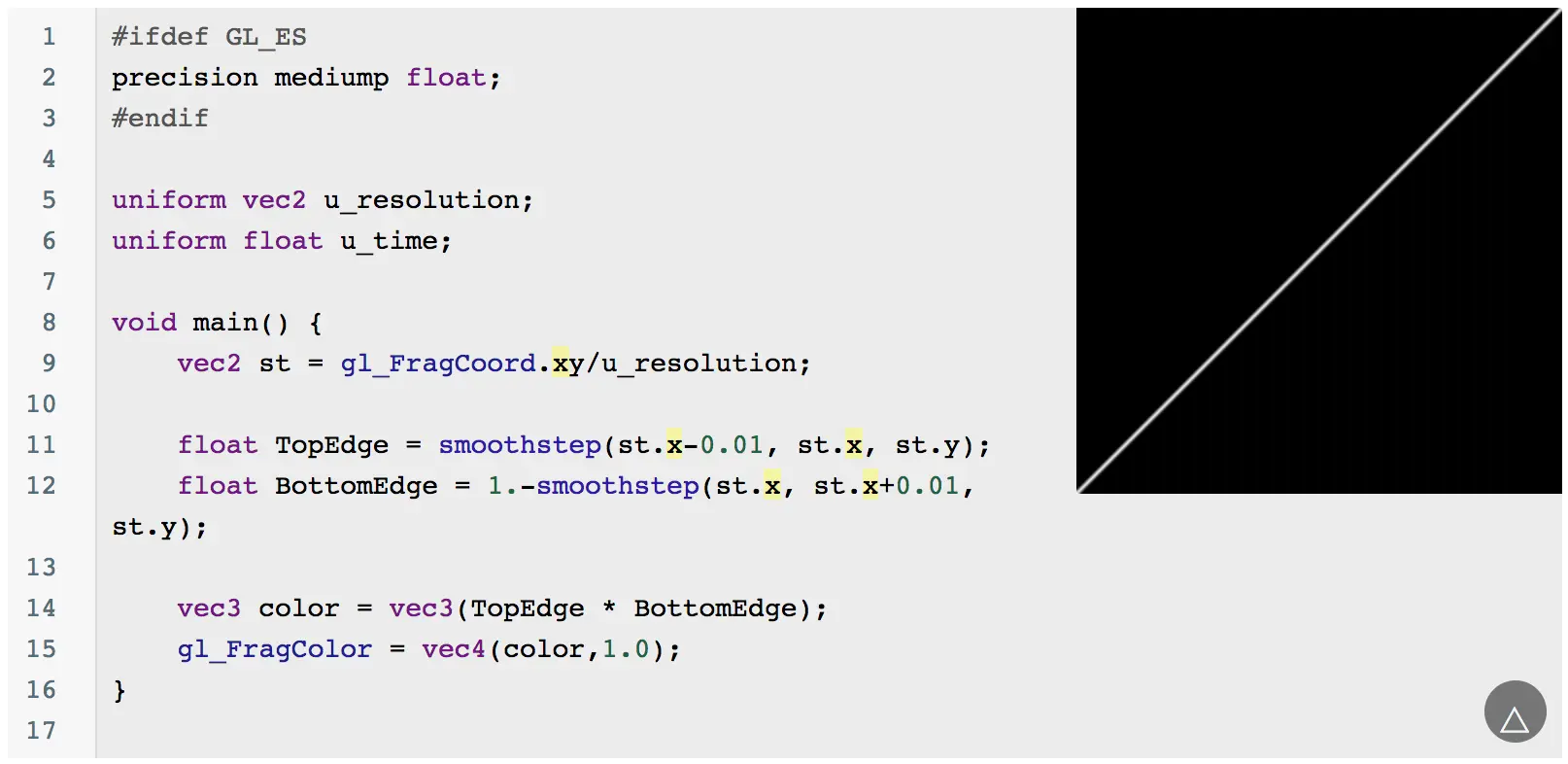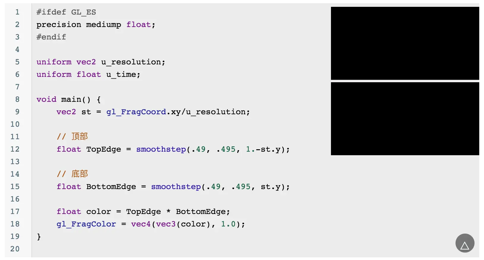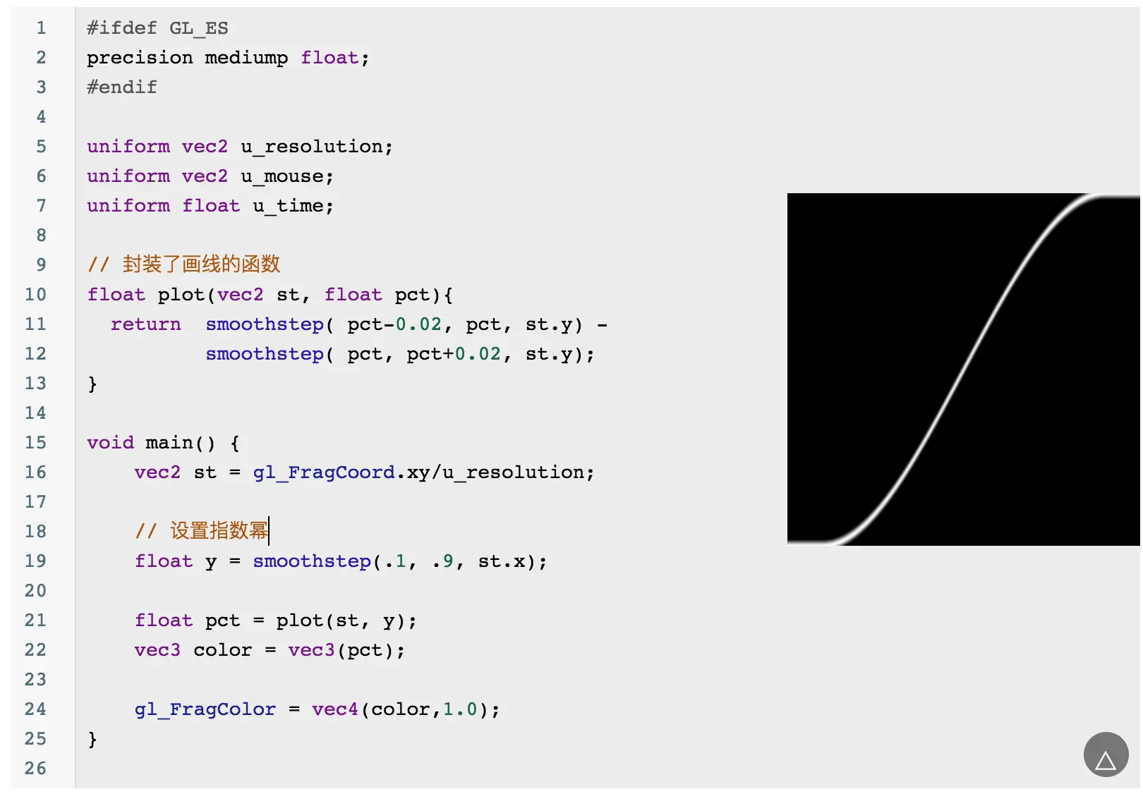 当然你会发现这个圆的边缘有锯齿,可以通过 smoothstep 来优化边缘问题: