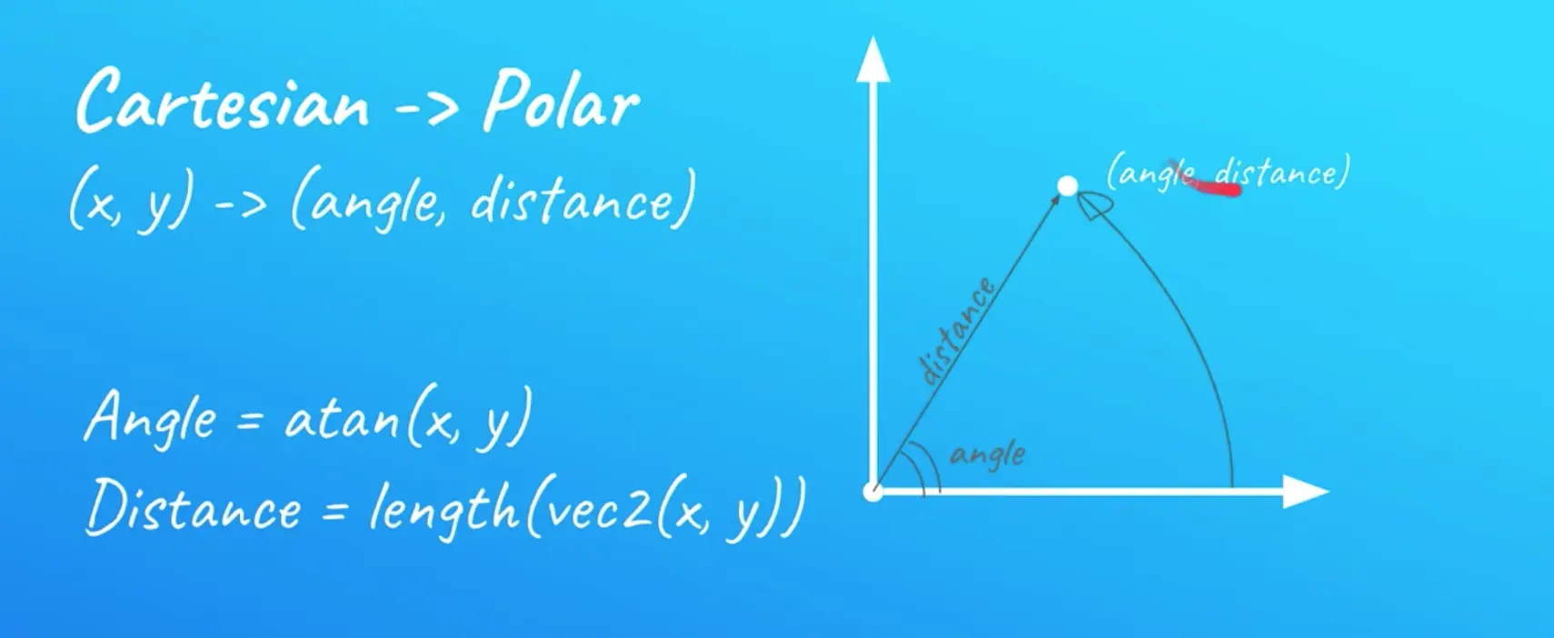 // Angle and radius from the current pixel