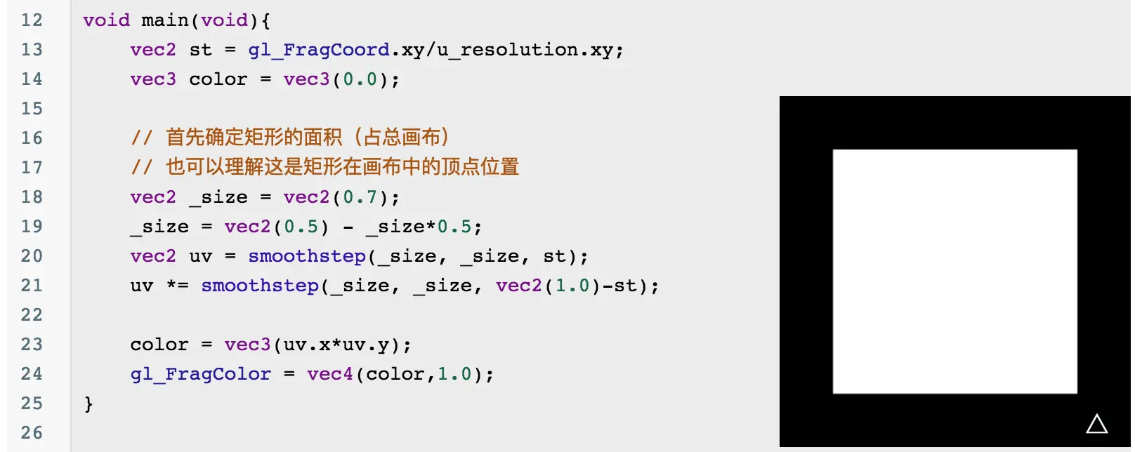 我们可以通过顶点着色器来绘制点线面图形,并组合成其他各种形状,但是一般 2D 场景中,顶点着色器一般都不改,并且它一般决定的是整个画布的大小。所以这里探讨的是通过片元着色器来绘制基础图形。