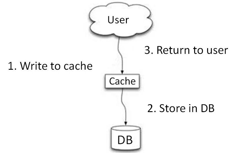 这个模式其实就是将缓存服务作为主要的存储,应用的所有读写请求都是直接与缓存服务打交道,而不管最后端的数据库了,数据库的数据由缓存服务来维护和更新。不过缓存中数据变更的时候是同步去更新数据库的,在应用的眼中只有缓存服务。