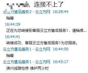 除响应速度,客服的语气和态度更是至关重要,淘宝卖家就不用说了,你发个什么他都亲长亲短地叫着,这方面得批评下云立方,因为我每次联系客服时,都会说「你好」并描述问题,然而云立方地客服只会冷冷地回复:服务器名。
