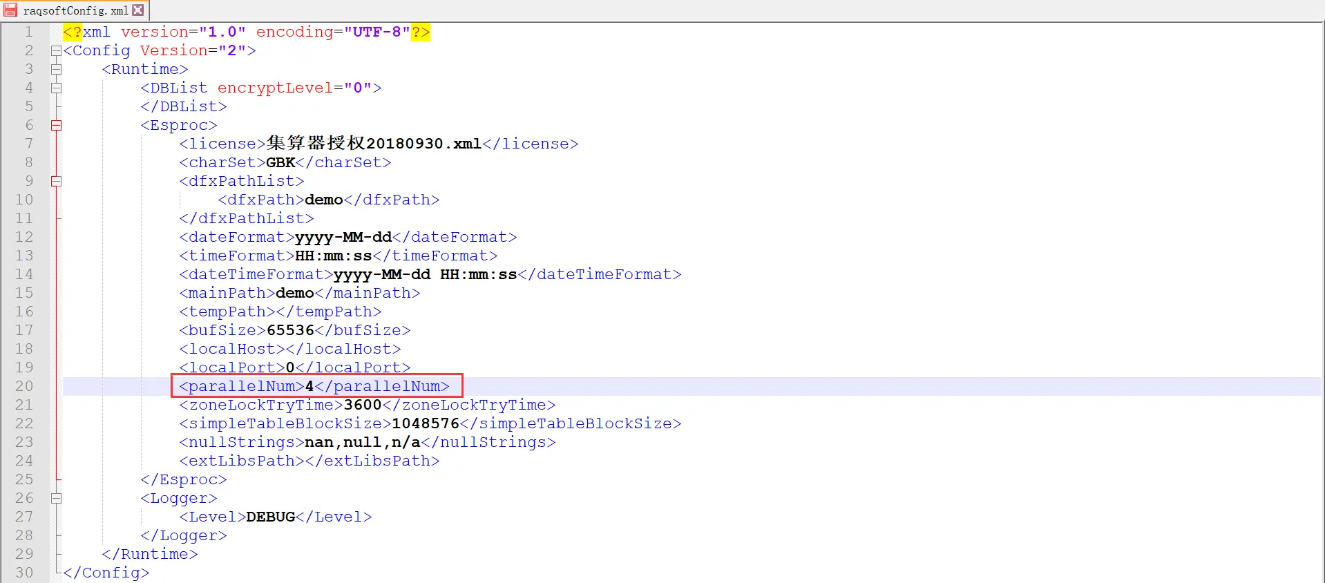 集算器服务端则需要修改 raqsoftConfig.xml 配置:
