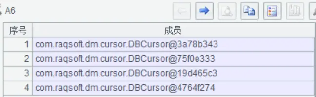 | 9 | =A6.mcursor() | / 合并查询结果 | |