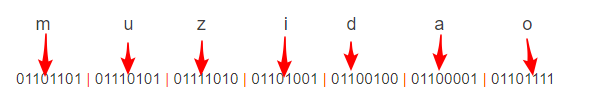 每个字母对应8位的二进制码,不满8位在前面自动补全0,为1的数量确实是31
