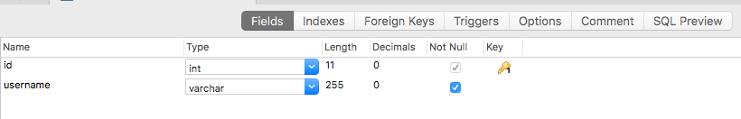 比如,我有一个 inception_test 库,其中有一张 userinfo 表,就两个字段: