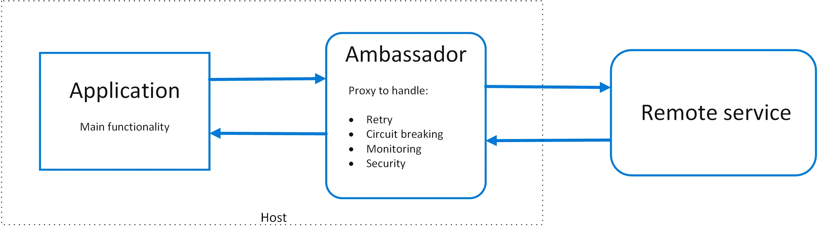 进程外的代理服务(之前介绍中间件的时候也提到了,很多框架层面的事情可以以软件框架的形式寄宿在进程内,也可以以独立的代理形式做一个网络中间件)。这里的大使模式意思就是这么一个网络代理进程,用于和远端的服务进行通讯,完成下面的工作: