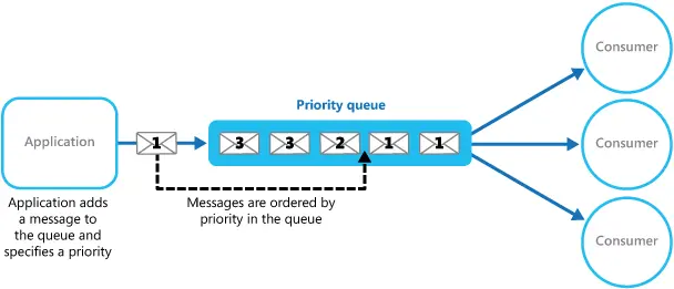 区别于FIFO结构的队列,优先级队列允许消息标识处理优先级。这里实现上如上面两个图有两种方式: