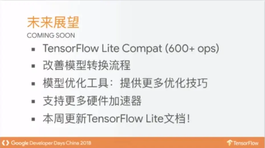 由于TensorFlow Lite支持的Ops有限,可能存在模型转换后,某些Ops不支持,针对这一问题,TensorFlow Lite团队计划支持更多的Ops