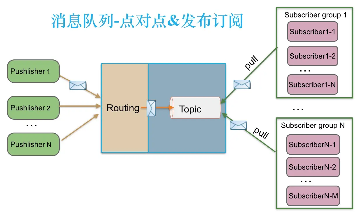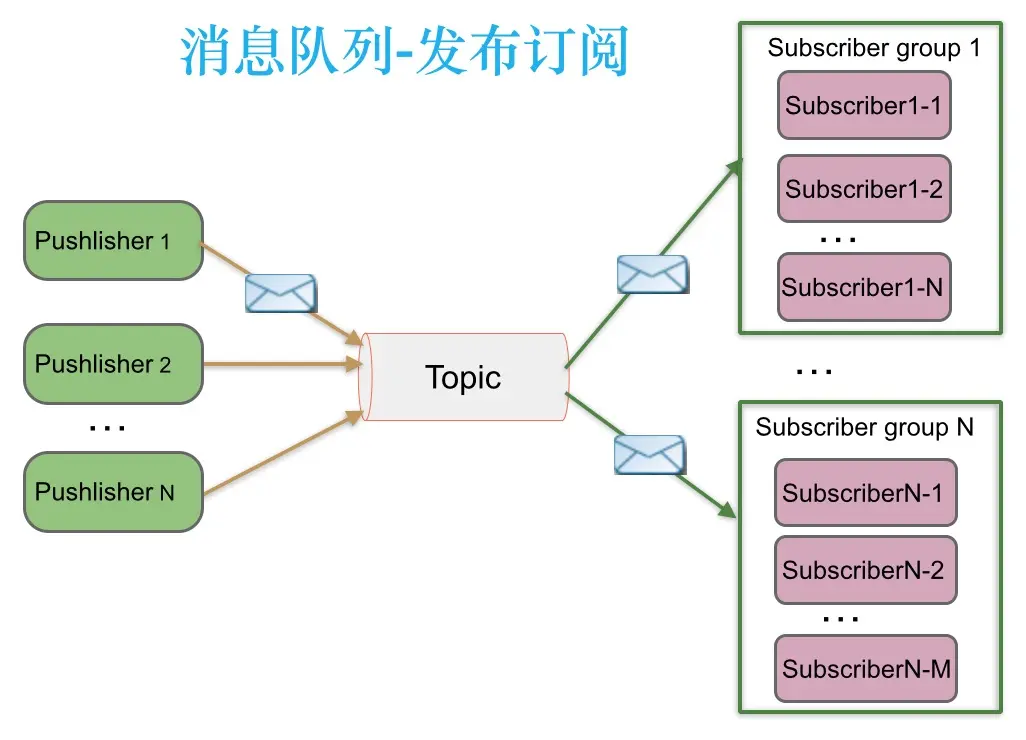 实际上现实场景中是多个订阅者节点组成一个订阅组负载均衡消费topic消息即分组订阅,这样订阅者很容易实现消费能力线性扩展。