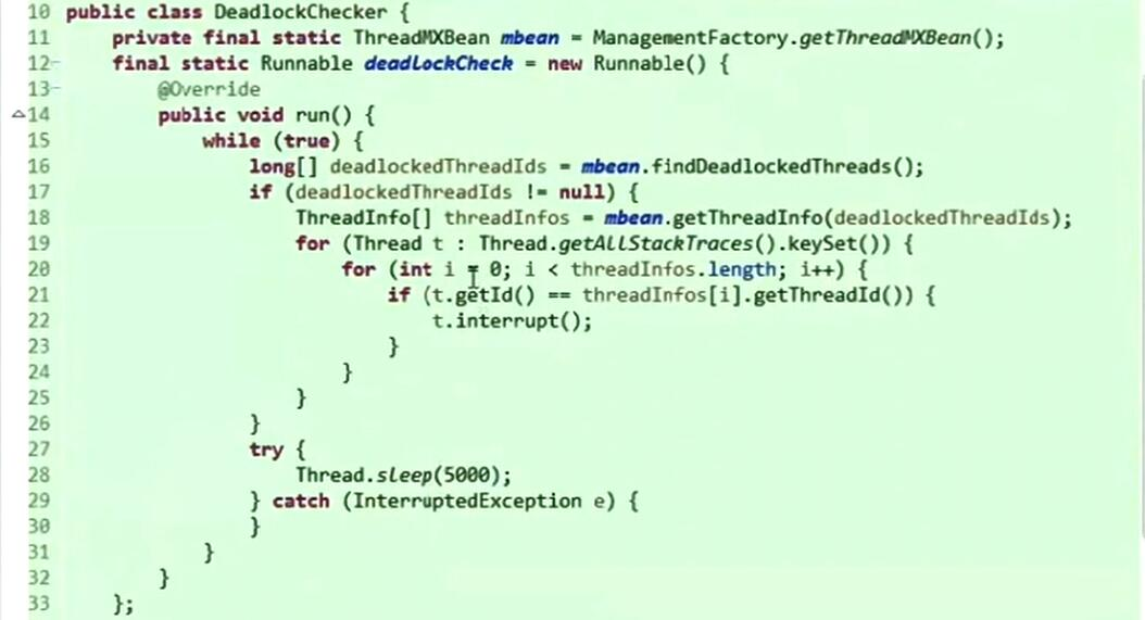 最后一行代码是个守护线程,专门检查死锁的实现代码如下: