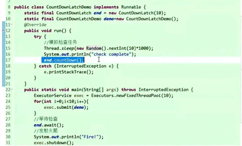 static final CountDownLatch end = new CountDownLatch(10);