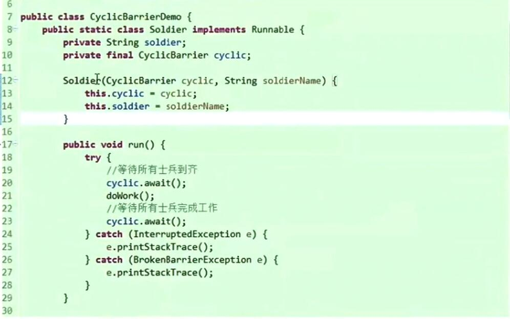循环栅栏 Cyclic意为循环,也就是说这个计数器可以反复使用。比如,假设我们将计数器设置为10。那么凑齐第一批1 0个线程后,计数器就会归零,然后接着凑齐下一批10个线程