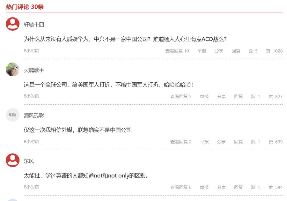 二、联想的中国形象岌岌可危——爱国网民对联想的公关说辞普遍不买账
