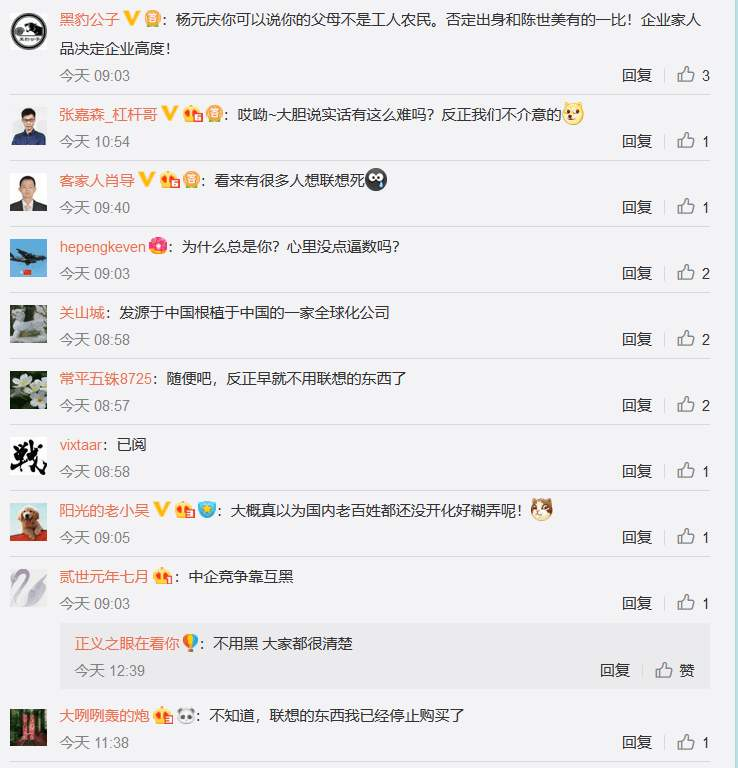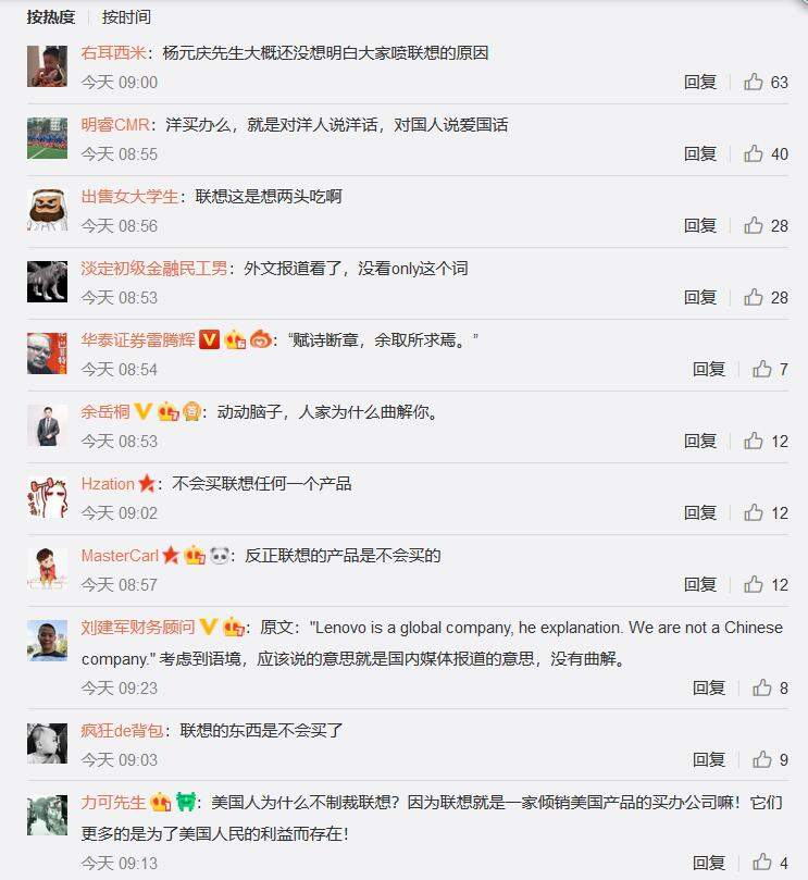 尽管杨元庆与联想的公关部门如此发声,广大网友仍然对这种解释不满意,比如在某新闻网站极其微信公众号的文章下面,网友如此评论: