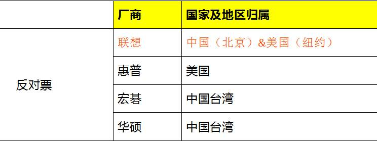No(反对票27个): Sams, NEC, Intel, QC, LG, Nokia, ASB, MotM, Lenovo(联想在这里), KT, Ericsson, CableLabs, ITL, Sequans, Acorn, Asustek, Mitsubishi, KDDI, Wilus, Accelercom, IMT, Orange, Sony, Sharp, Fujitsu, VzW, Docomo
