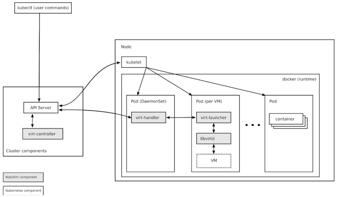 KubeVirt是Kubernetes的虚拟机管理附件,旨在让用户可以在Kubernetes或OpenShift集群中让虚拟机与容器一同运行。它扩展Kubernetes采用的方法是,借助Kubernetes的自定义资源定义(CRD)API,为虚拟机和虚拟机集合添加资源类型。KubeVirt虚拟机在常规的Kubernetes pod中运行,它们可以访问标准的pod网络和存储资源,使用kubectl等标准的Kubernetes工具加以管理。