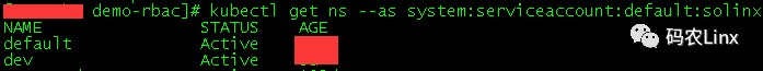 RBAC实例demo下面创建solinx-service-account.yml文件包含以下内容: