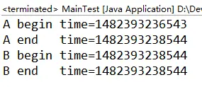 System.out.println("B begin time="+System.currentTimeMillis());