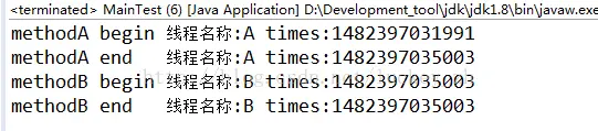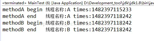 System.out.println("methodA begin 线程名称:"+Thread.currentThread().getName()+" times:"+System.currentTimeMillis());