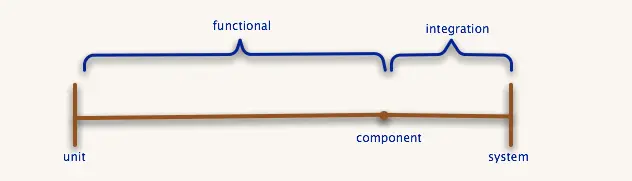 functional:功能测试,比一个单元要大,比一个完整的组件测试要小。通常为工作在一起的的几个方法/函数/类。上百的测试用例允许运行几个小时。大部分功能测试是功能测试回归套件的一部分;