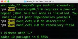 另外,在npm3的项目中,可能存在一个问题就是你所依赖的一个package包更新了它peerDependencies的版本,那么你可能也需要在项目的package.json文件中手动更新到正确的版本。否则会出现类似下图所示的警告信息:
