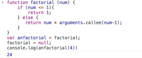 通过使用arguments.callee代替函数名,可以确保无论怎么样调用函数都不会出现问题。因此,在编写递归时,使用arguments.callee总比使用函数名更保险。 ——《js高程》原话