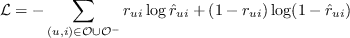 是这个网络的参数。 传统的MF可以被视为NCF的一个特例。 因此,将矩阵分解的神经解释与MLP融合来制定更通用的模型是方便的,该模型利用MF的线性和MLP的非线性来提高推荐质量。 可以使用加权平方损失(用于显式反馈)或二元交叉熵损失(用于隐式反馈)来训练整个网络。 交叉熵损失定义为: