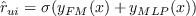 对组成(用户和项目的身份和特征)。 为简单起见,FM和MLP的输出分别表示为