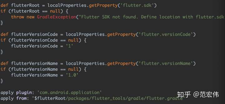 可以看到,编译过程中引入了Flutter SDK中的flutter.gradle编译配置文件,具体查看flutter.gradle可以发现以下重要信息