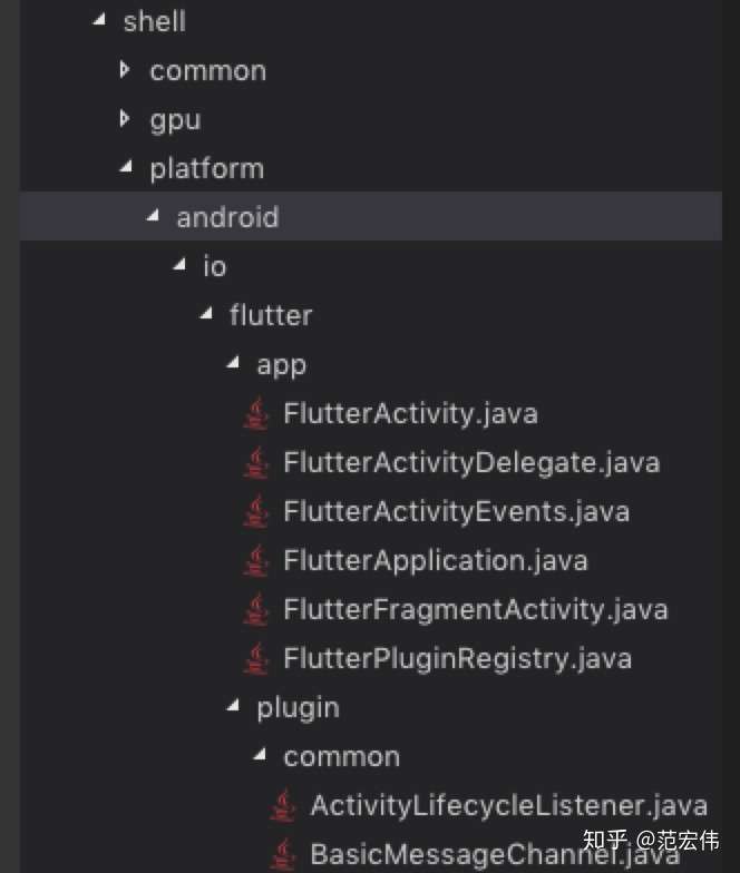 看到了FlutterApplication以及MainActivity,通过查看代码MainActivity是继承自FlutterActivity的。接下来就需要查看FlutterApplication、FlutterActivity等源码了。根据常识这部分源码就是刚编译过程中看到的flutter.jar的内容,在Flutter SDK中未找到源码,苦苦寻找,在github flutter仓库中发现了engin工程,源码居然深藏于此。