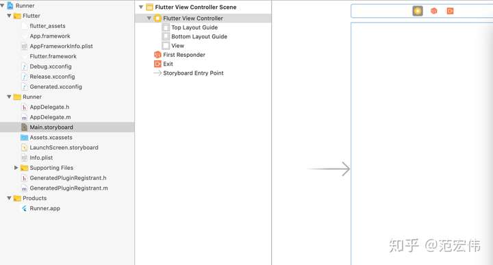 在Main.storyboard中可以发现,其使用了FlutterViewController,接下来在Flutter SDK中找到FlutterViewController