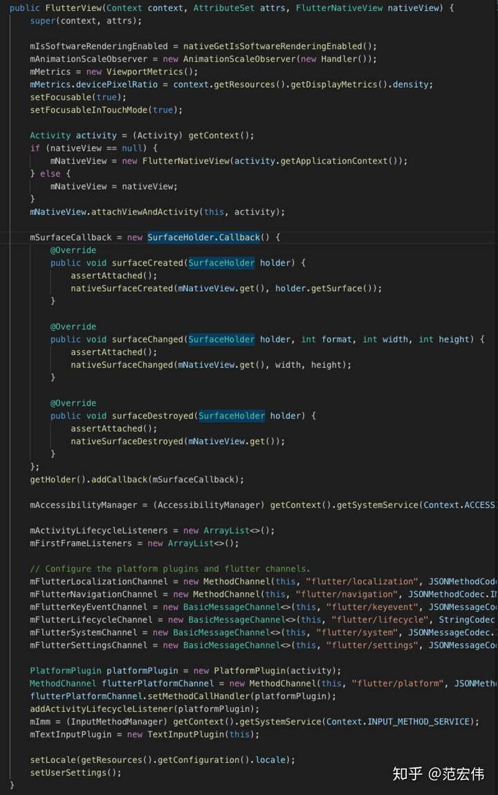 可以发现同样创建了FlutterView以及setup了用来通信的channel,首先来看FlutterView