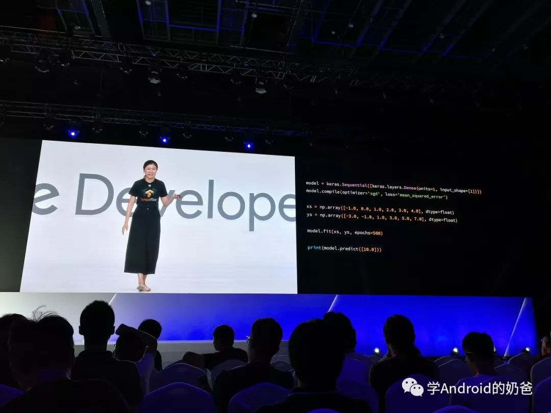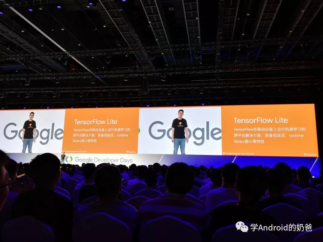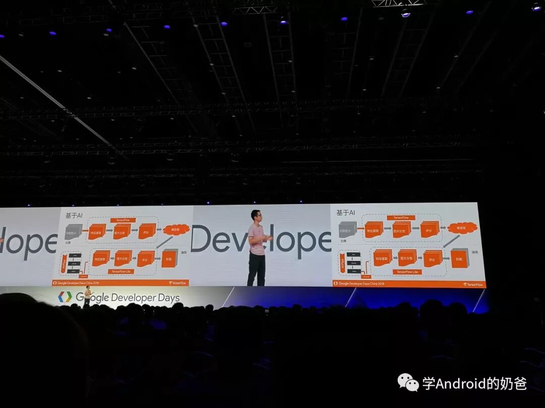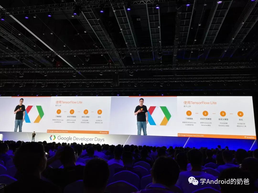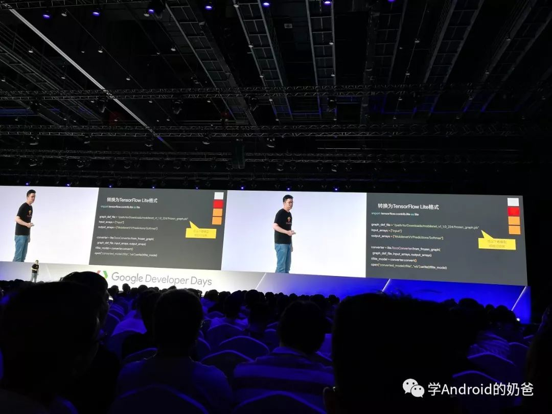 然后去了TensorFlow场,主要讲了TensorFlow Lite在移动端的一些用法,用TensorFlow先训练模型,然后直接把训练好的模型导出给移动端使用。