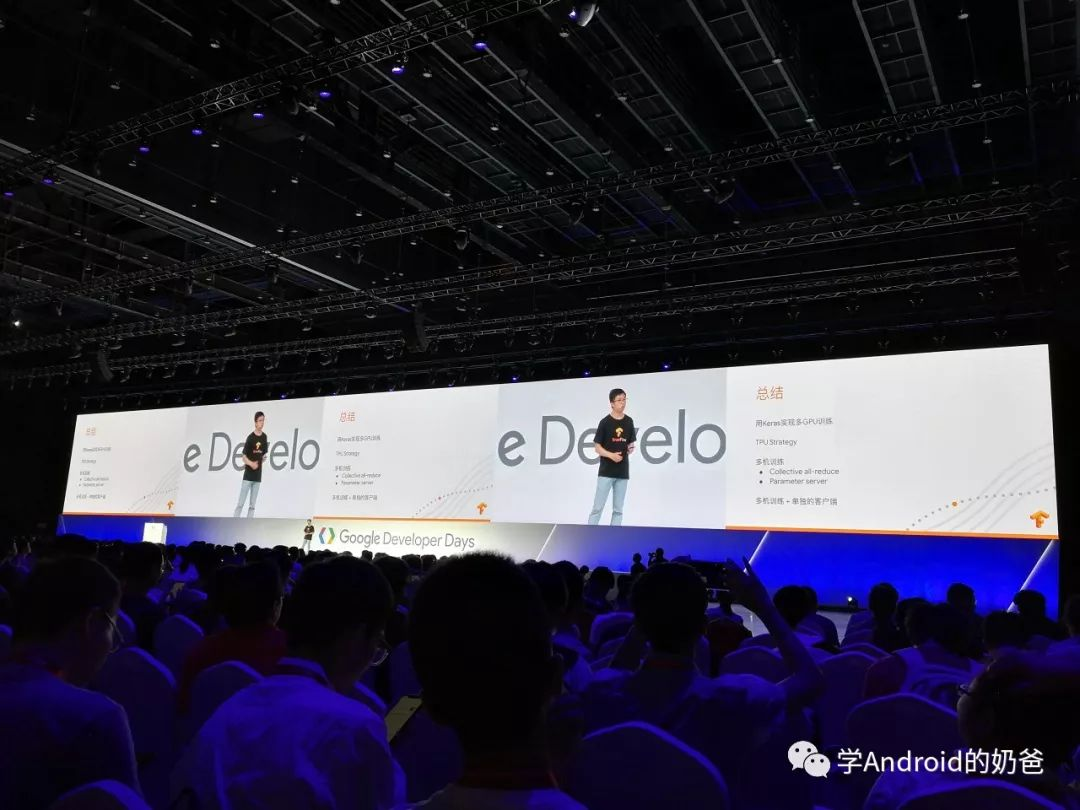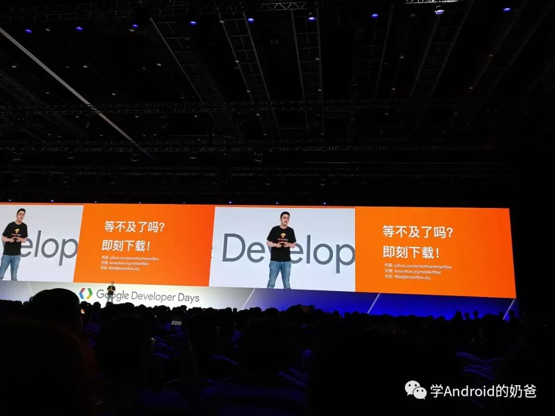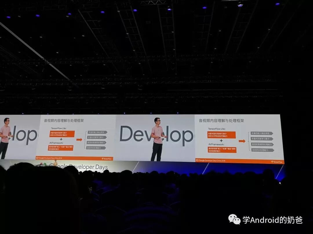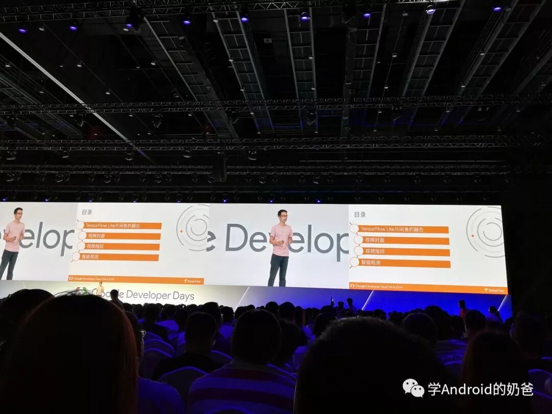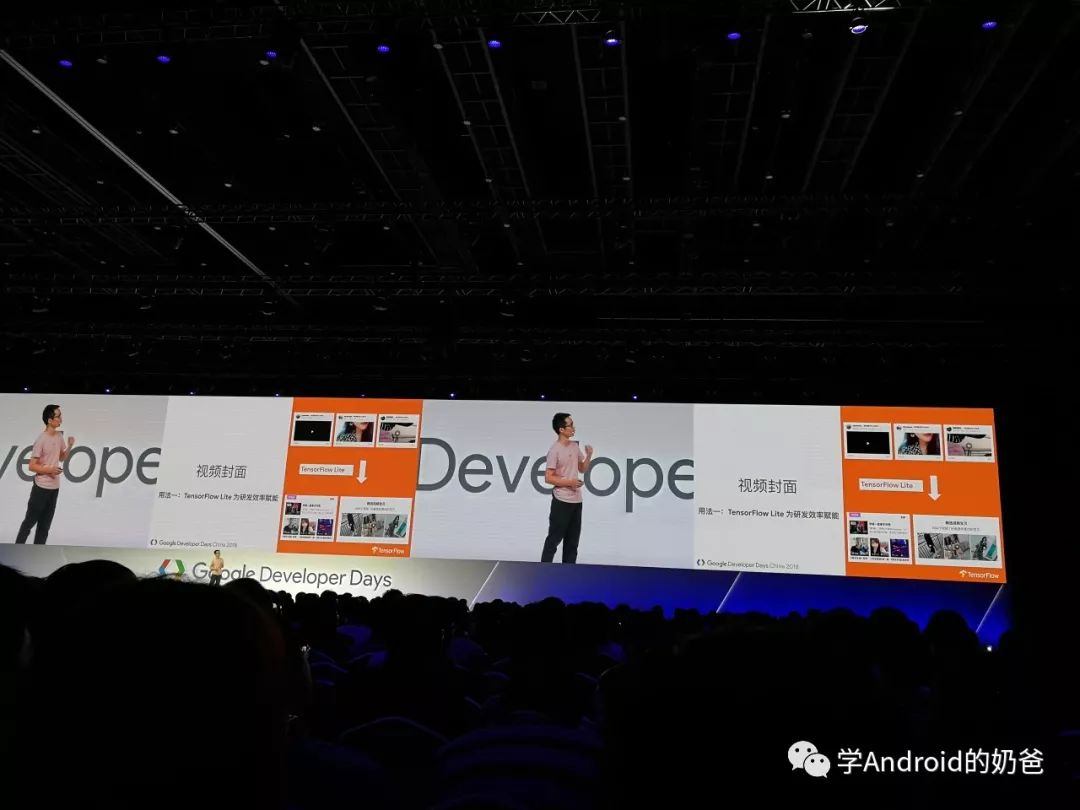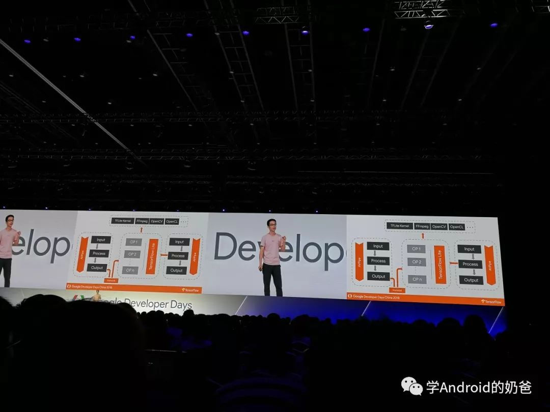 然后去了TensorFlow场,主要讲了TensorFlow Lite在移动端的一些用法,用TensorFlow先训练模型,然后直接把训练好的模型导出给移动端使用。